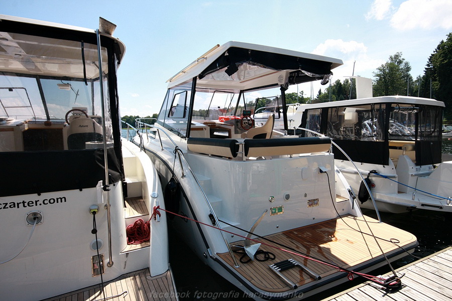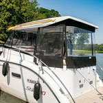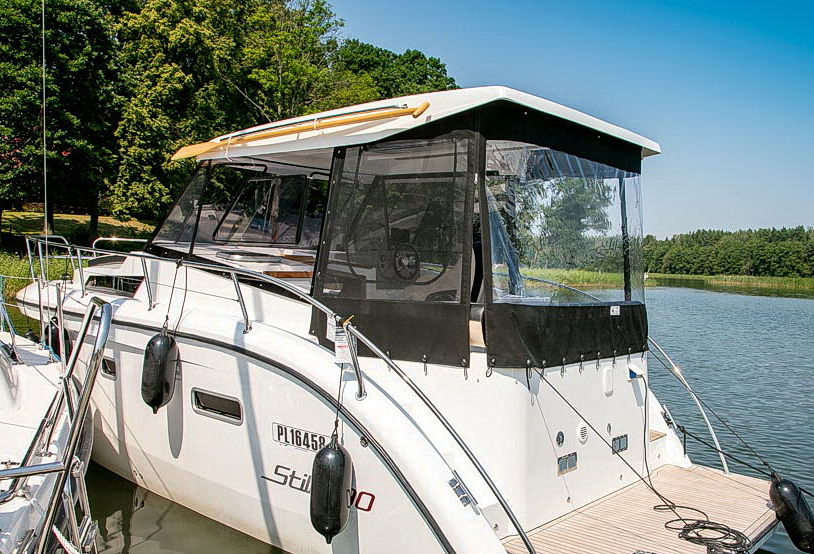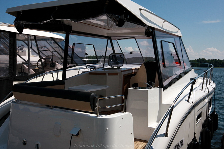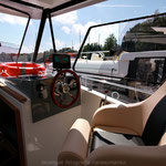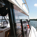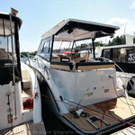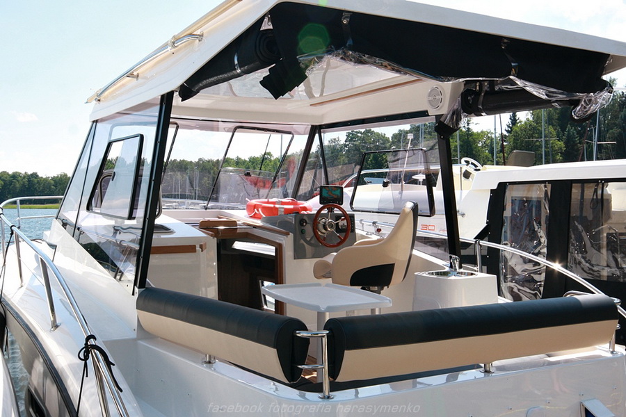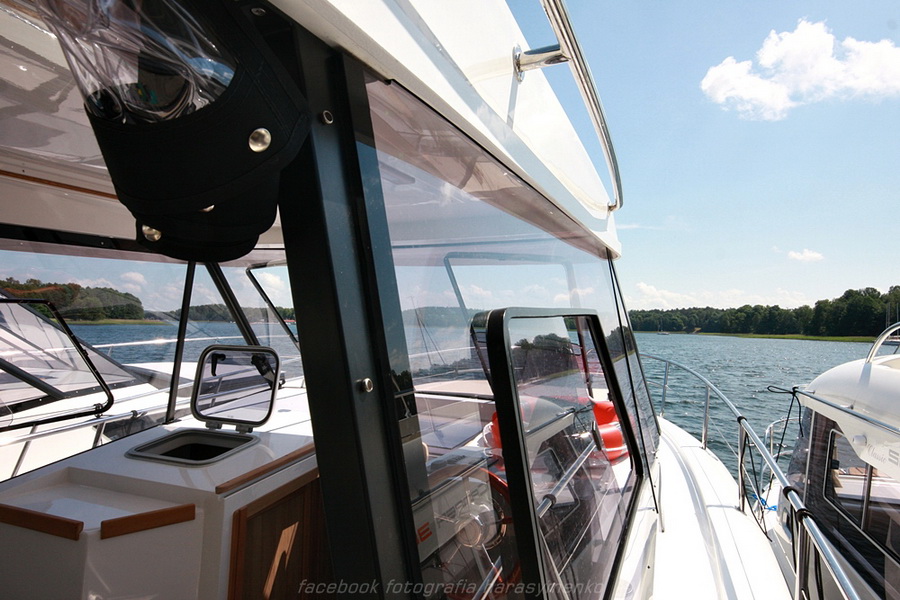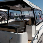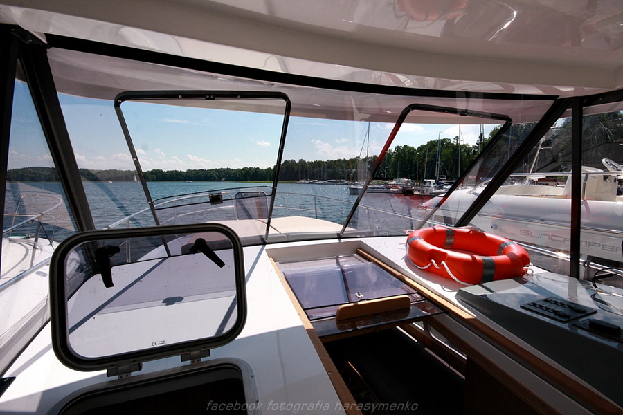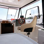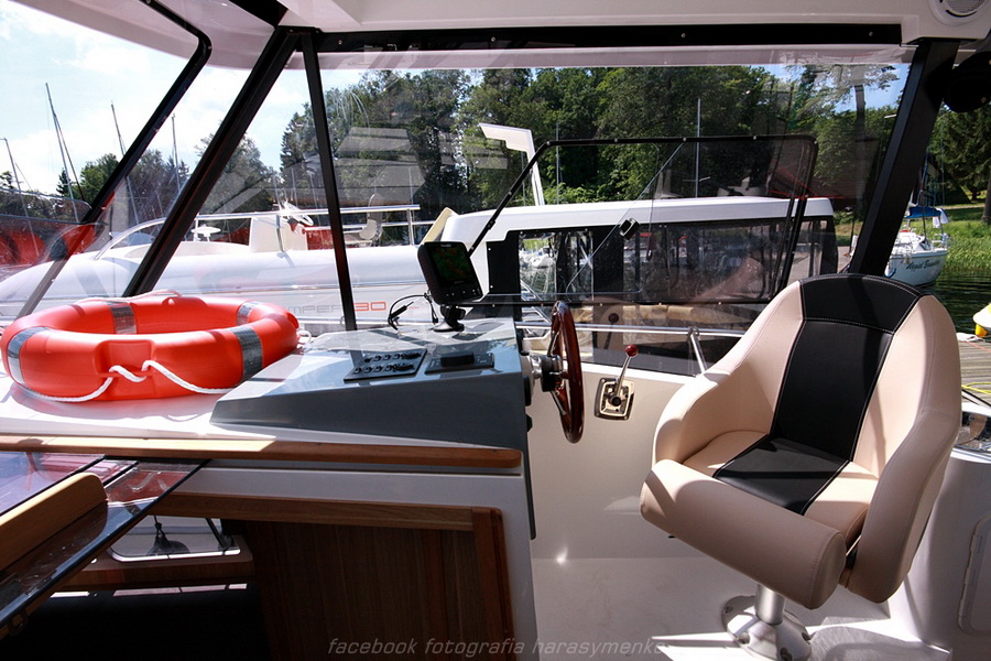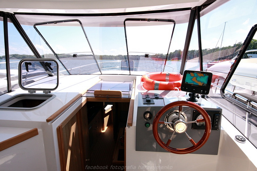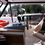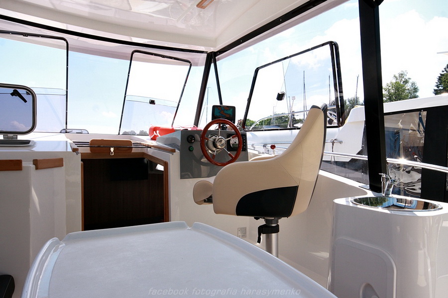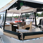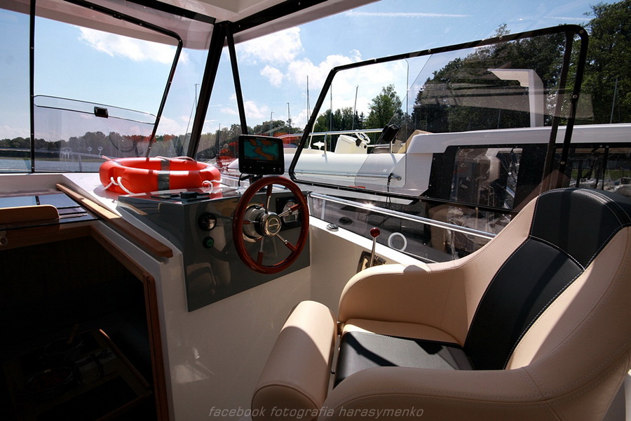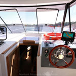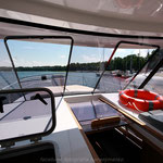 Der Steuerstand ist mit Echolot und GPS technisch sehr gut ausgestattet. Ein großer Vorteil dieses Bootes ist, dass man den fest überdachten Außenbereich (Cockpit) mit einem Schutz vor Wind und Wetter komplett schließen (Persenning), ebenfalls gibt es einen Mückenschutz. Das Cockpit ist wirklich groß und verfügt neben dem gepolsterten Kapitänssessel über einen Tisch und über gepolsterte Bänke. Das Bordradio kann vom Steuerstand aus bedient werden, sowohl Kabine als auch Cockpit sind mit Lautsprechern ausgestattet.