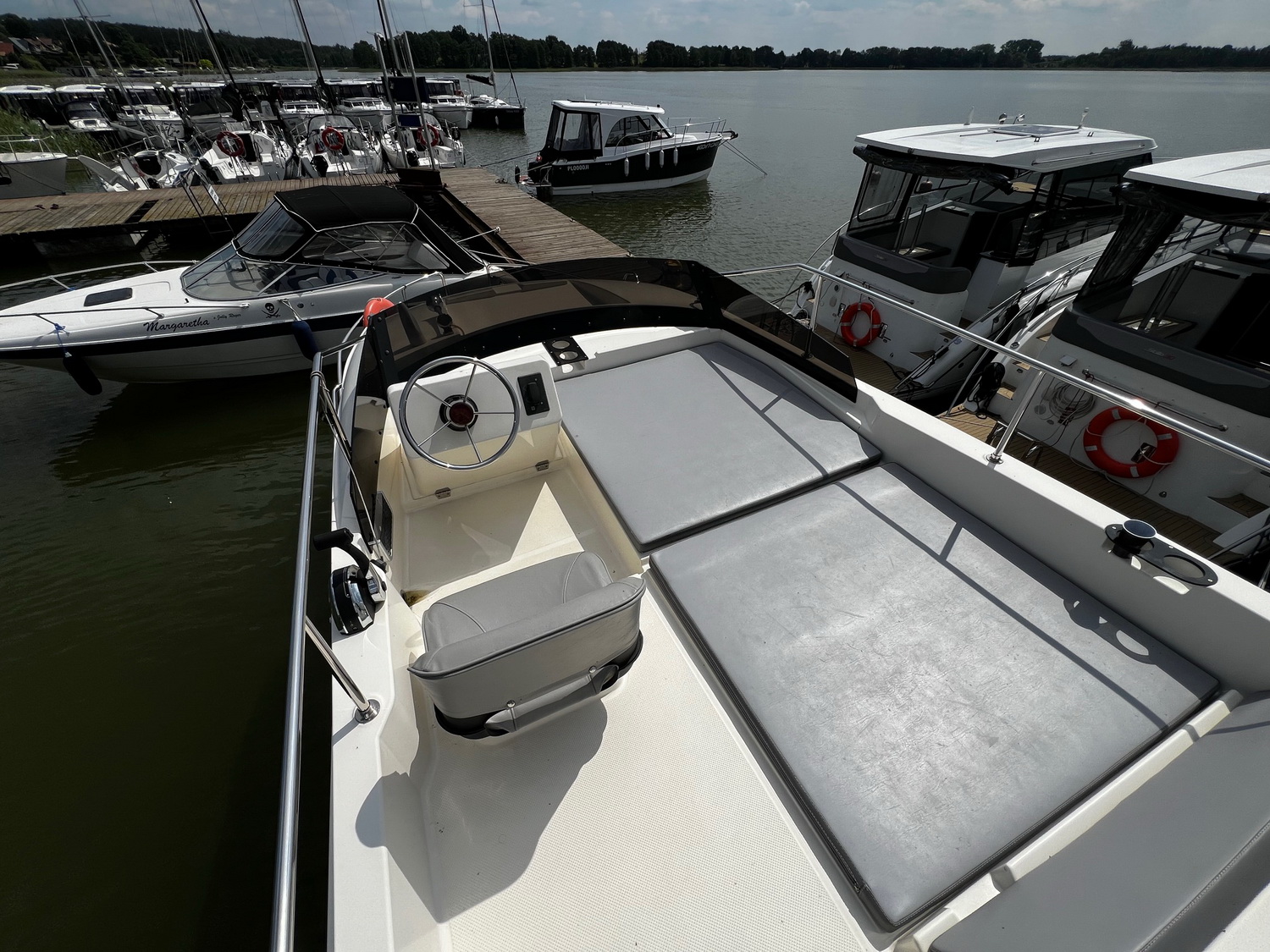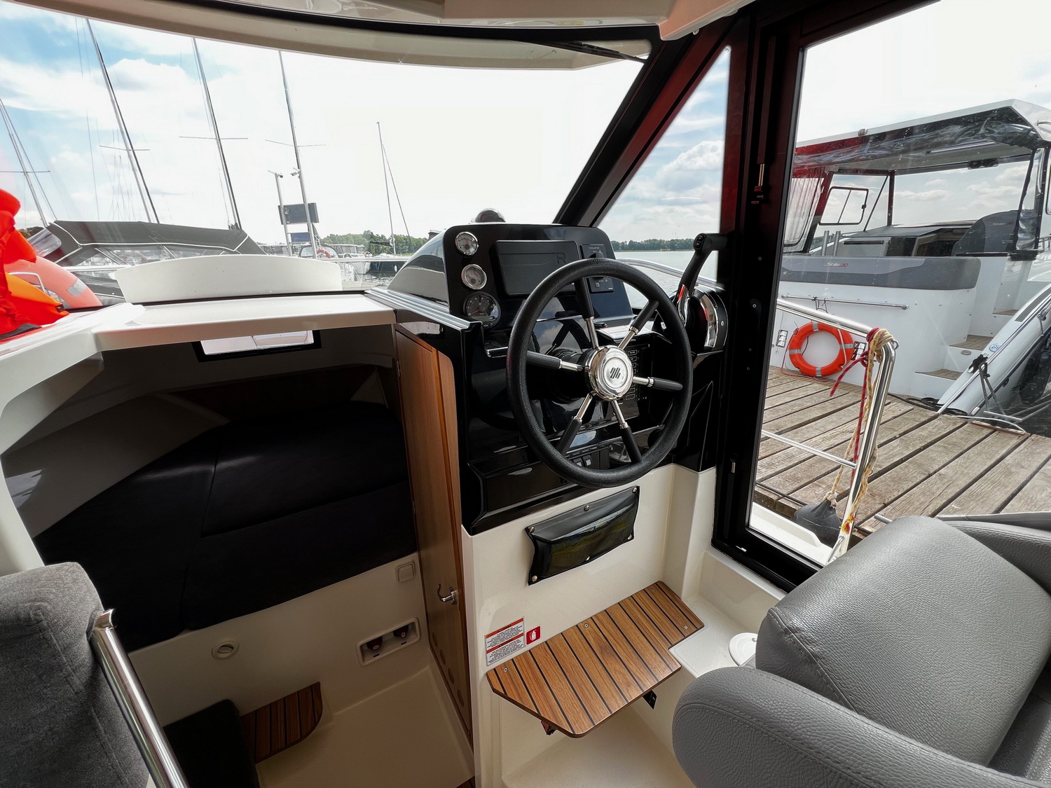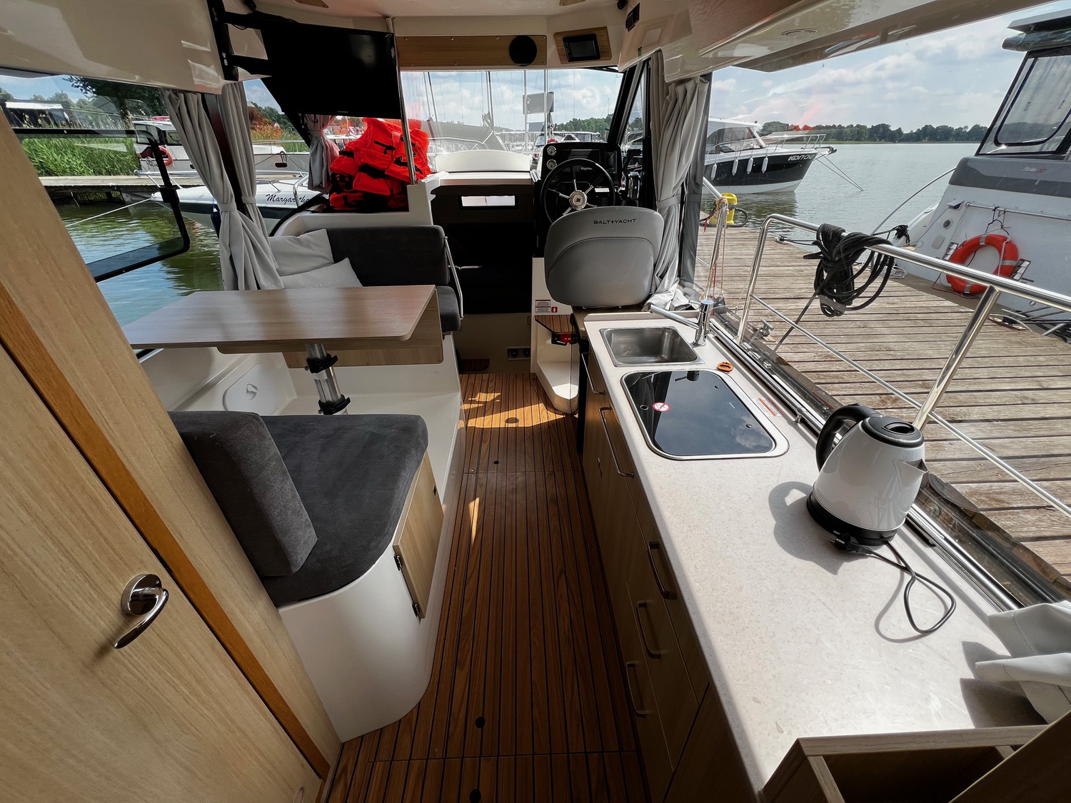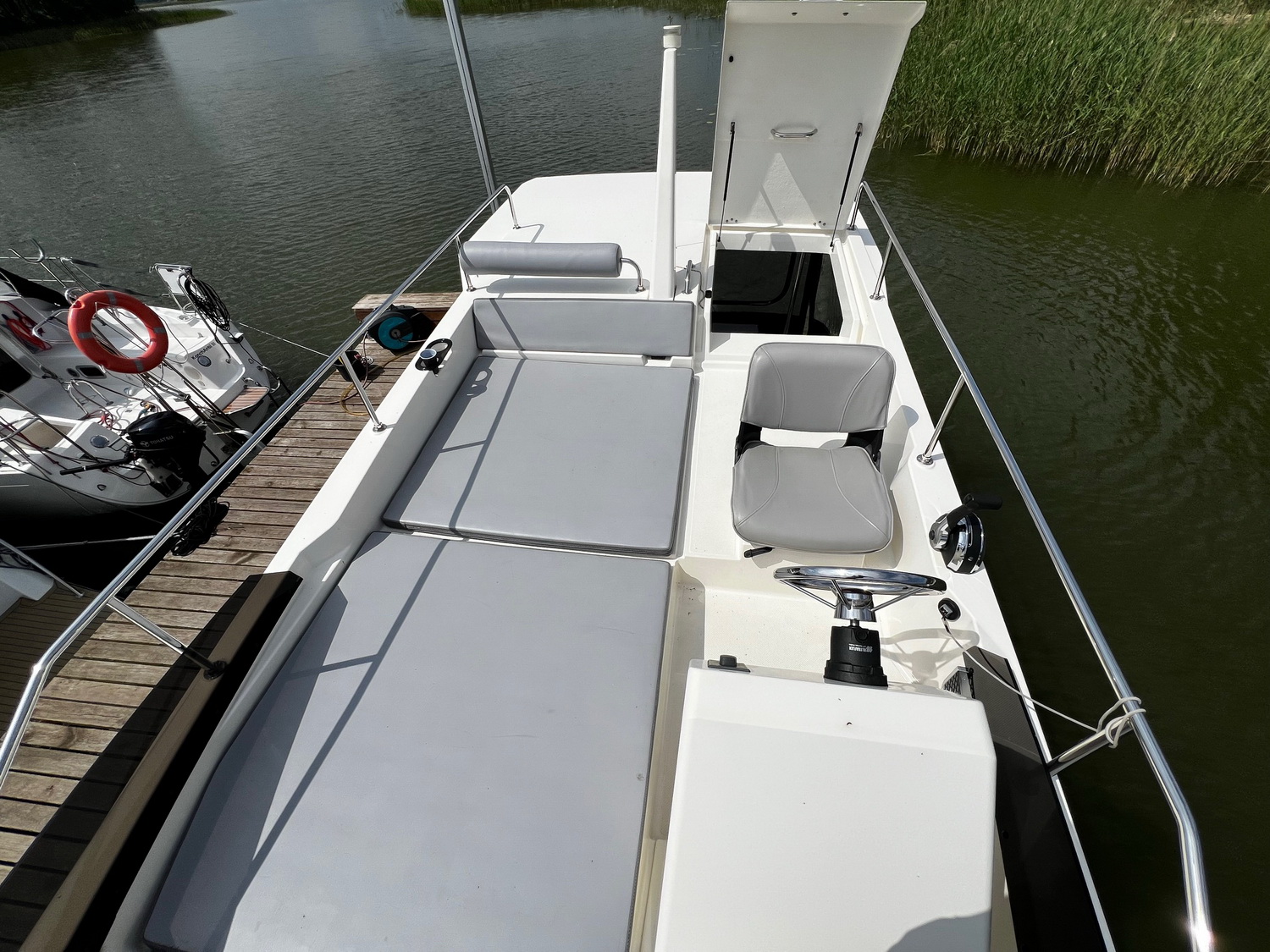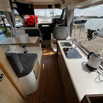 Mit dem leistungsstarken 50 PS Außenbordmotor sowie Bug- und Heckstrahlruder hat das Boot hervorragende Steuereigenschaften.