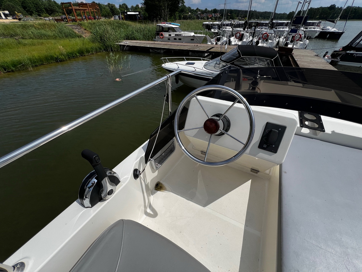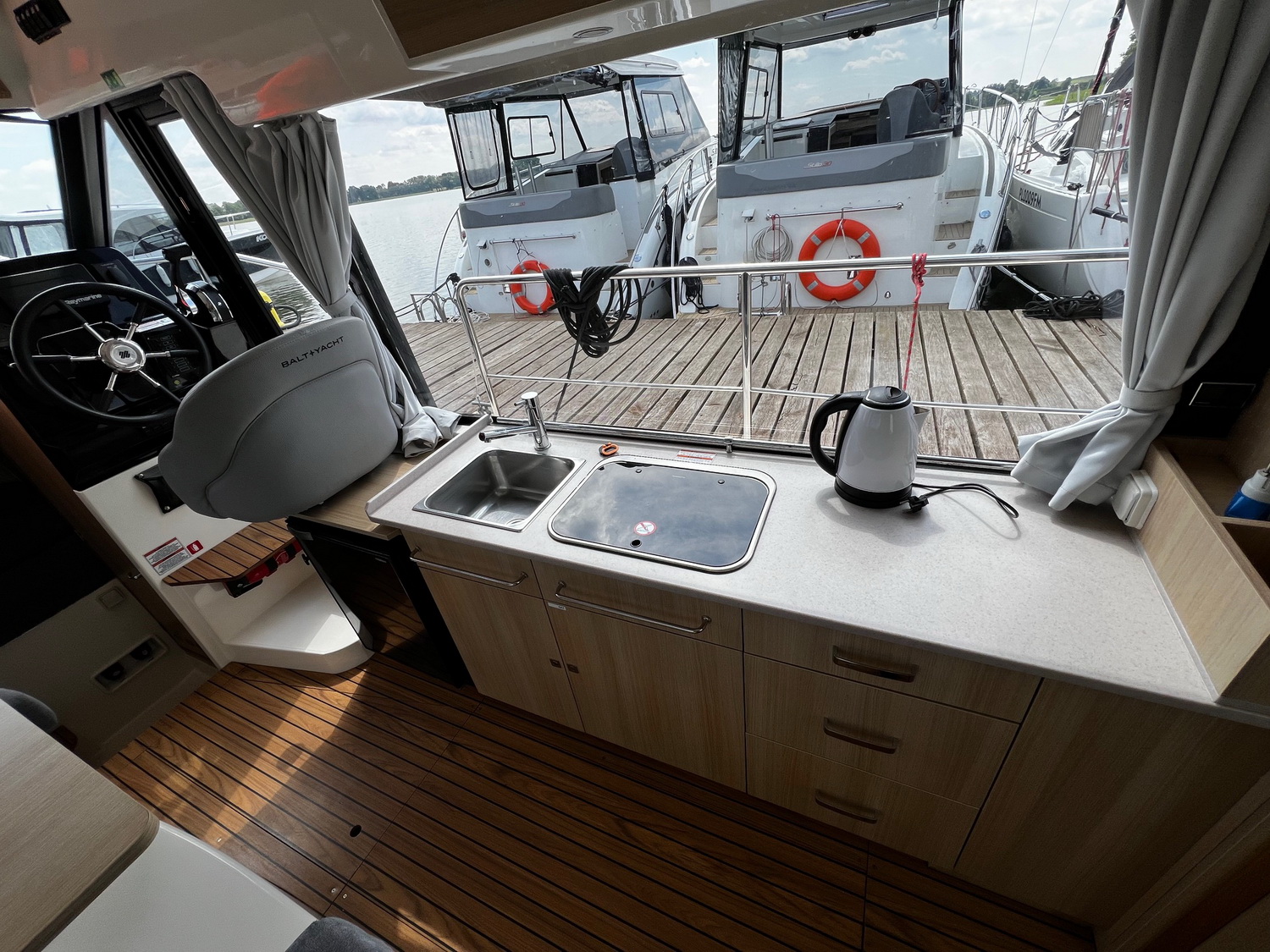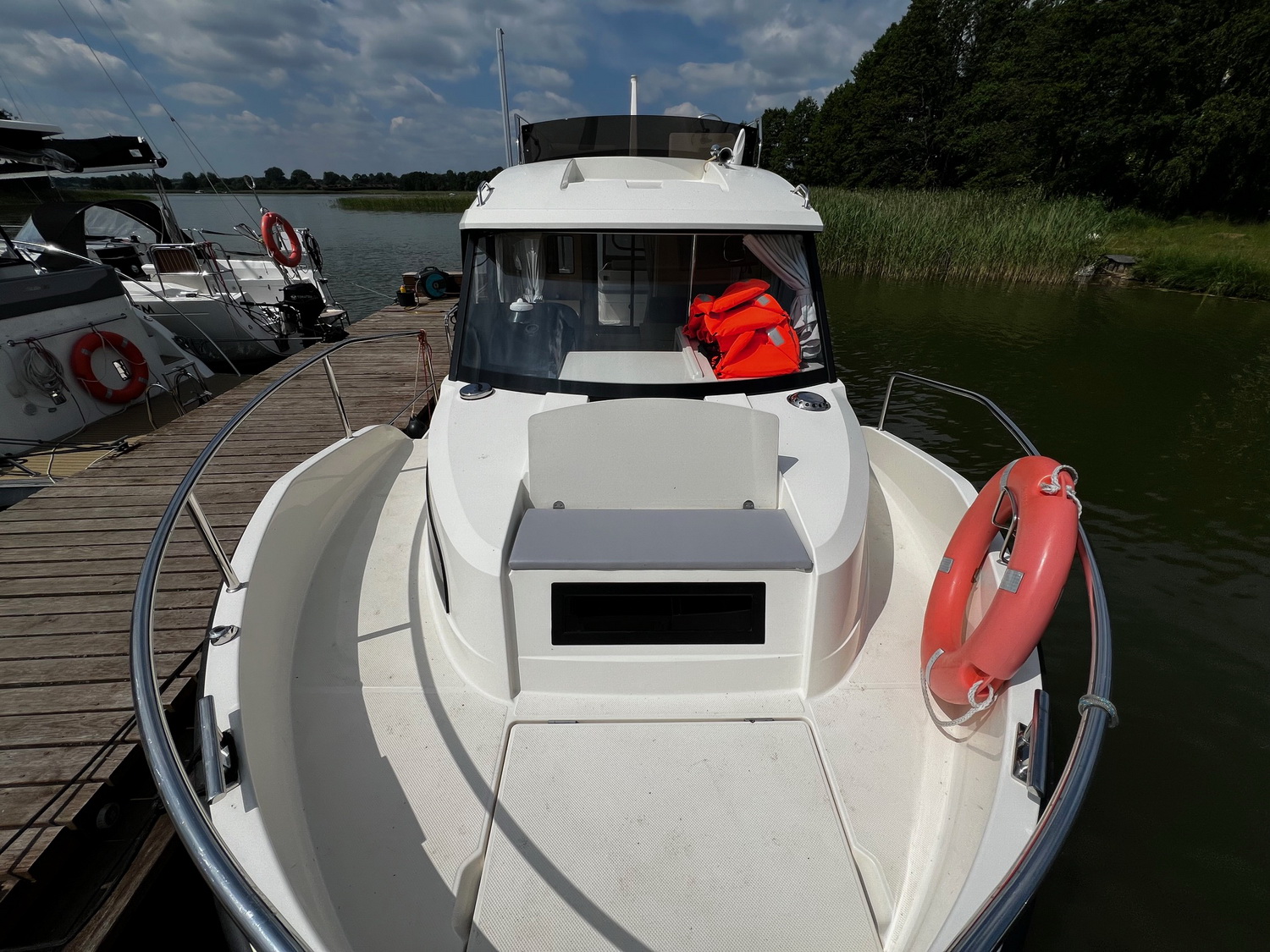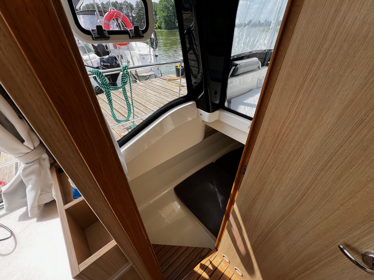 Mit dem leistungsstarken 50 PS Außenbordmotor sowie Bug- und Heckstrahlruder hat das Boot hervorragende Steuereigenschaften.