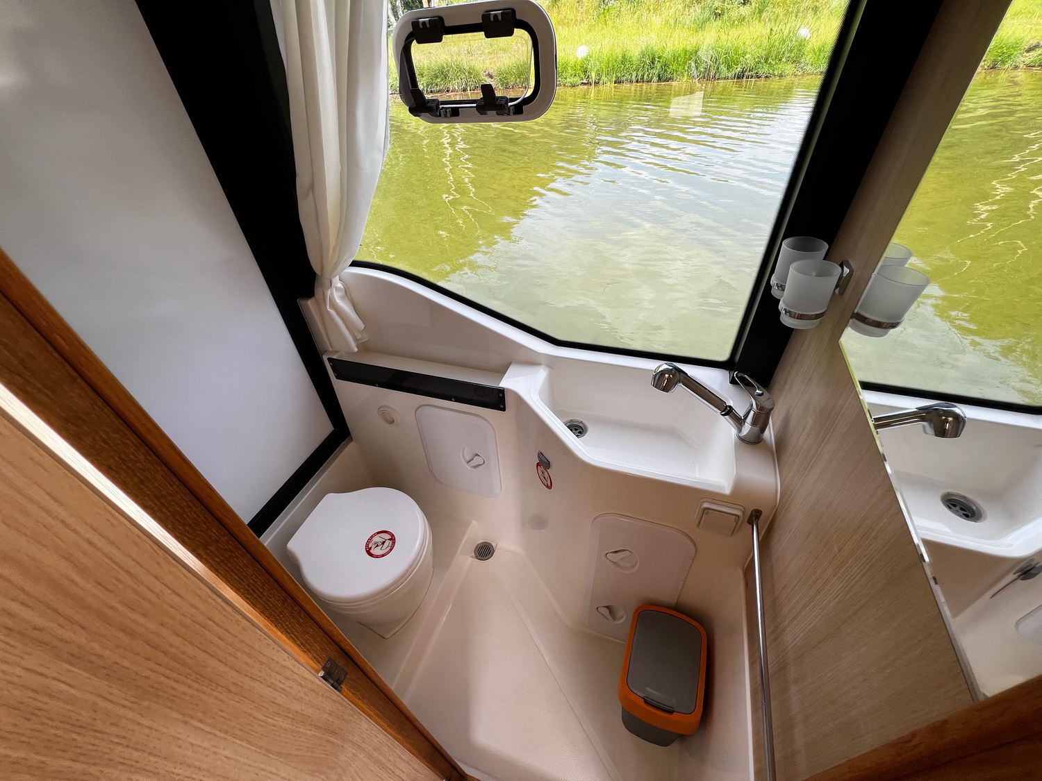 In der Hauptkabine gibt es eine Stehhöhe von fast 2 Metern. Zwei geräumige Badkabinen jeweils mit Waschbecken und normalem WC sowie einer Warmwasser-Duschmöglichkeit in der Haupt-Badkabine (Salon) sowie zwei getrennte Schlafkabinen sind die absoluten Pluspunkte dieses Hausbootes.